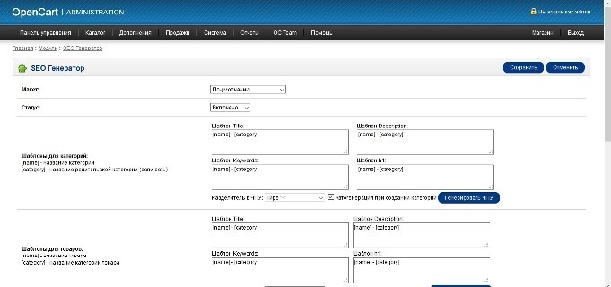 Особенностью модуля есть то, что он не вносит изменения в базу данных, а генерирует МЕТА-теги на лету. При этом не нужно беспокоится о том, что он случайно удалит нужную информацию о товарах или категориях, которая создавалась долгое время.
