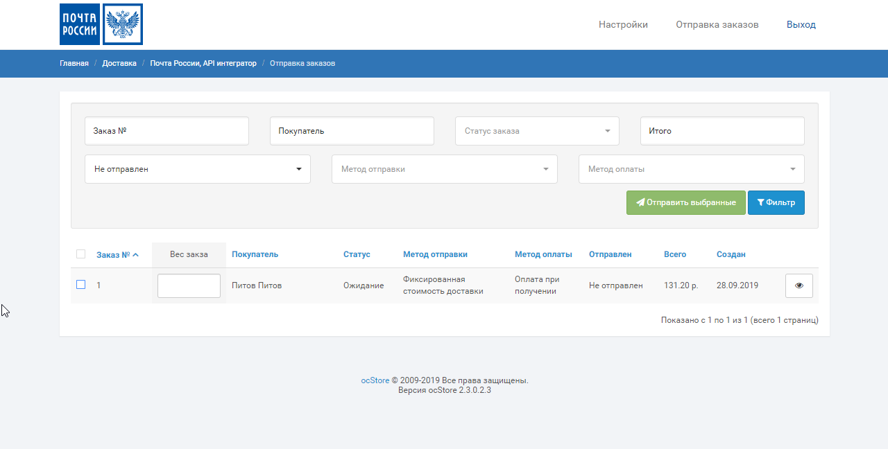Модуль добавляет возможность отправлять заказы на сервис Почты России, имеет гибкие настройки.