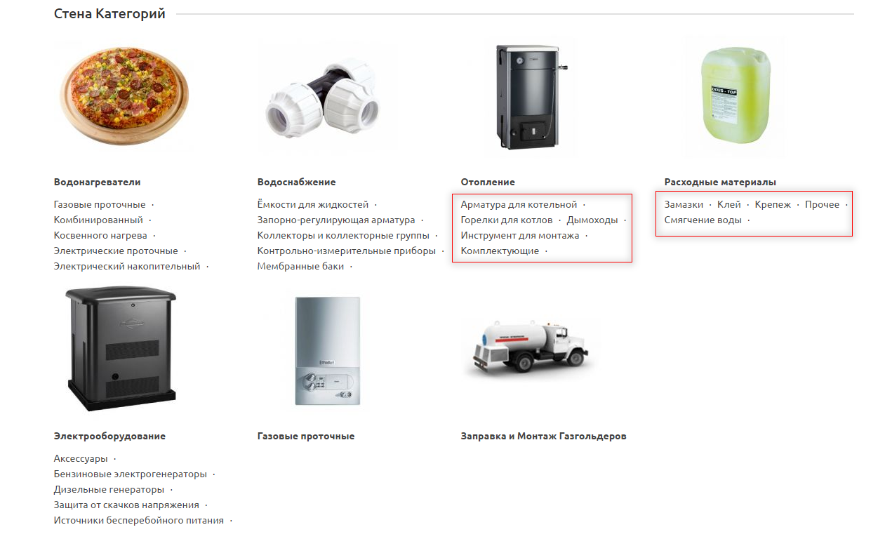 - Разный тип отображения под-категорий (немаркиванный список, маркированный список, в один ряд .Примеры на скринах.)