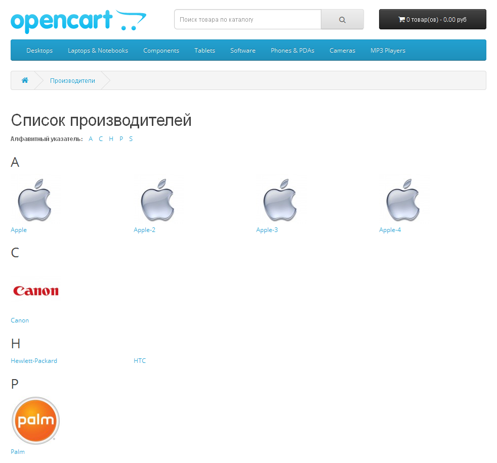 1. Загрузить файл manufacturer-logo.ocmod.xml в Extensions->Extension Installer (Дополнения > Установка дополнений)