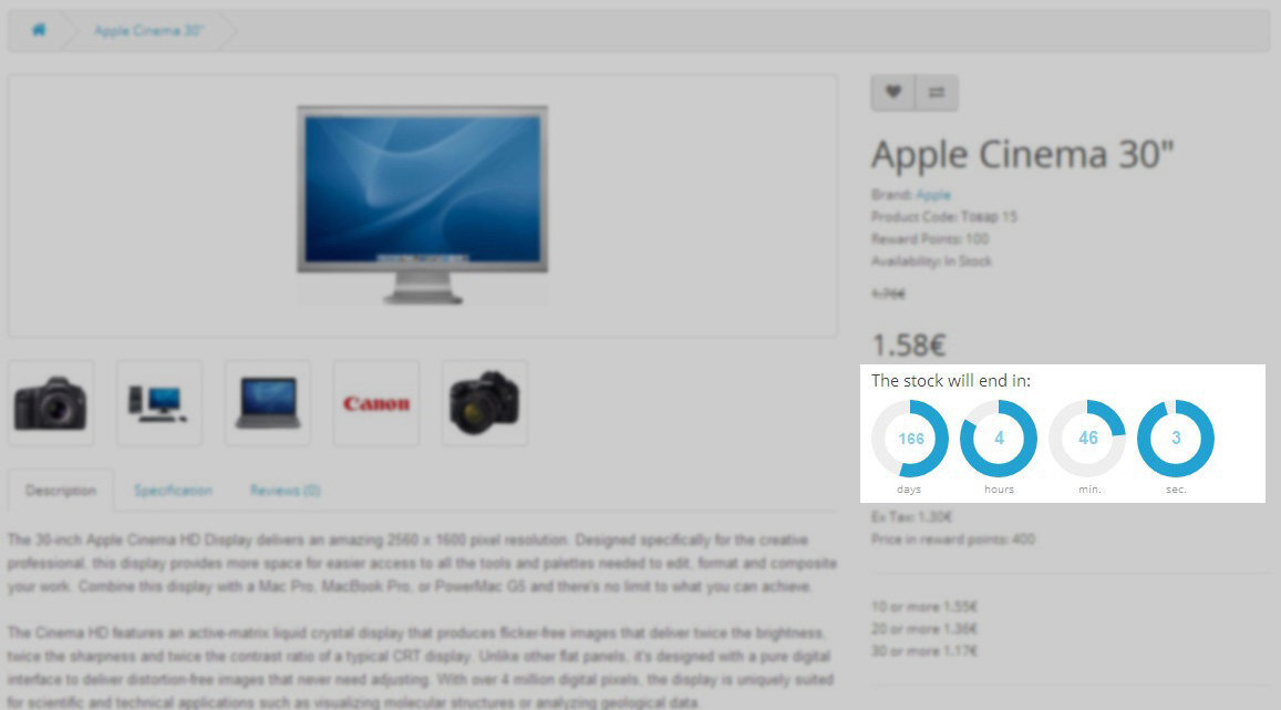 Орбатный отсчет до конца действия акционной цены на странице продукта.