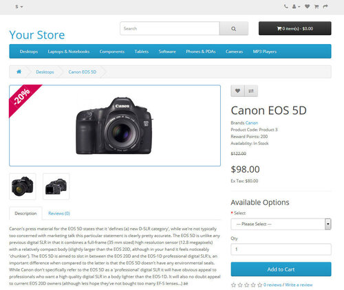 При назначении на товар акционной цены, вычисляет процент скидки и помещает стикер на изображении товара на странице категории и в карточке товара.