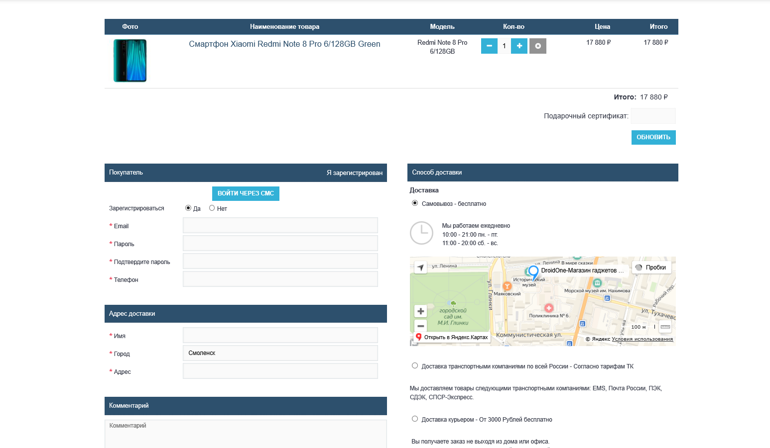 На стороне сервера магазина формируется код доступа из введенного в поле номера телефона клиента, после чего на сервер smsc.ru отправляется сгенерированный код доступа, далее отправляется клиенту на его номер телефона.