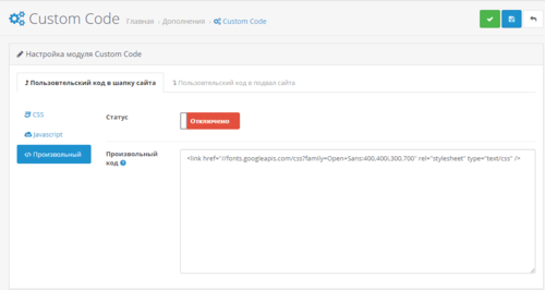 Дополнение, которое позволяет добавить необходимый код в шапку и/или подвал сайта.