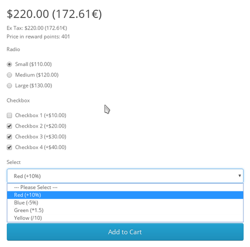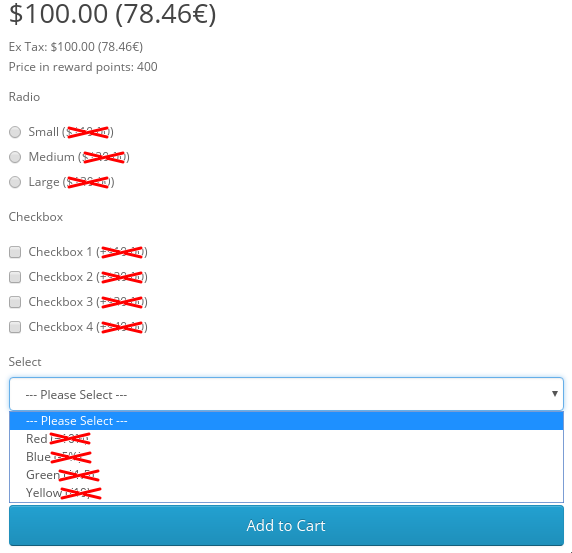 Динамическое изменение цены товара при выборе опции и изменении количества товара для OpenCart OC2 и OC3 - HYPER Dynamic price of options.