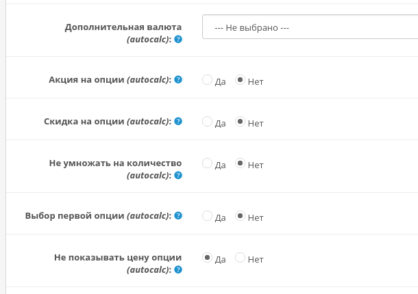 Автоматический выбор первой опции - (вкл / выкл)