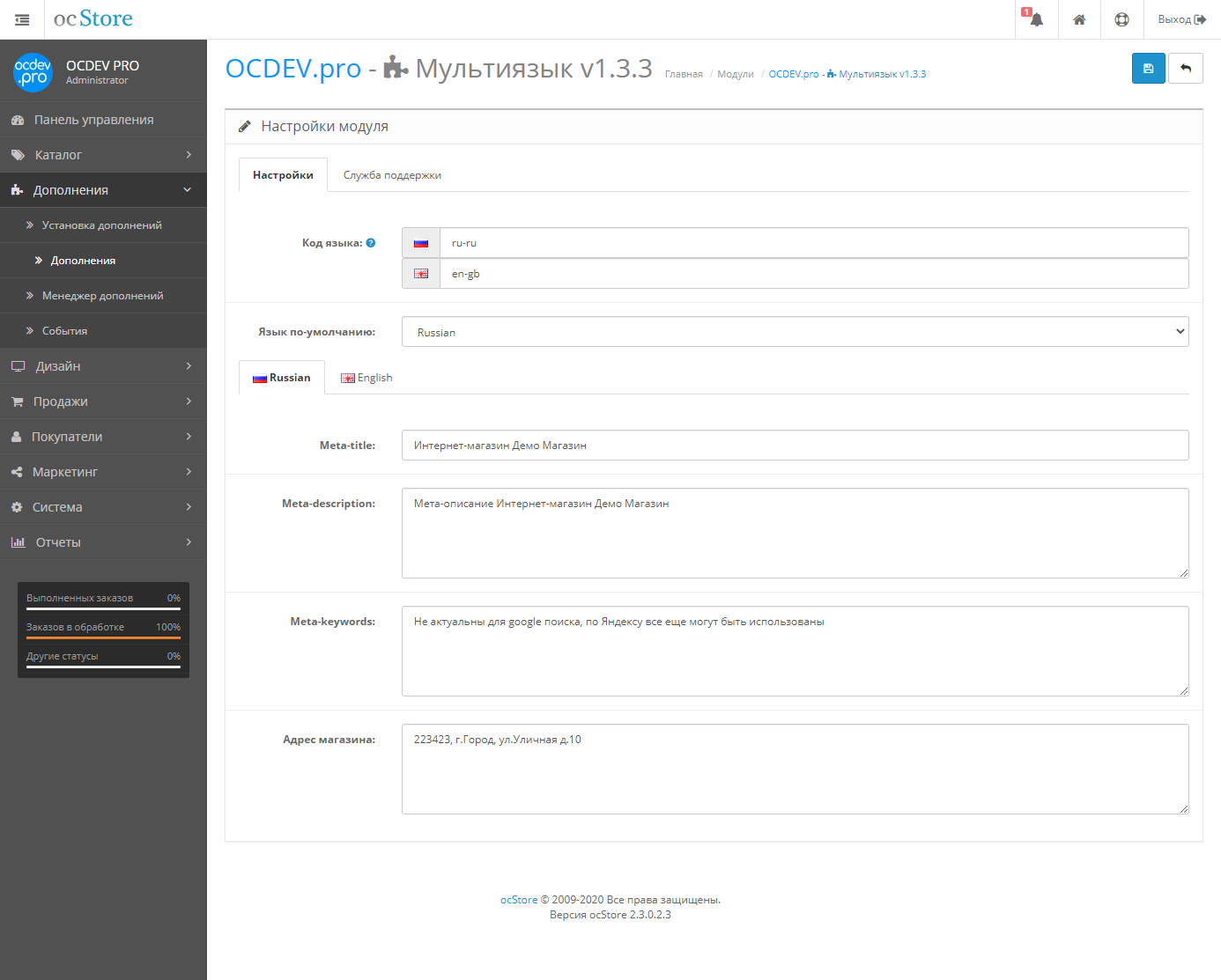 Доступные функции модуля Мультиязык SEO PRO (ocStore, Opencart.pro 2.x):