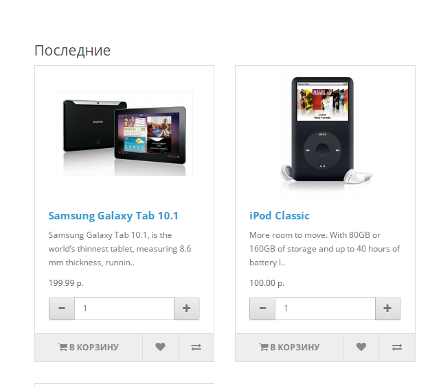 - Вывод в списках рекомендуемых, последних, бестселлеров, акционных, категориях, производителях, связанных, карточке товара и на странице поиска.