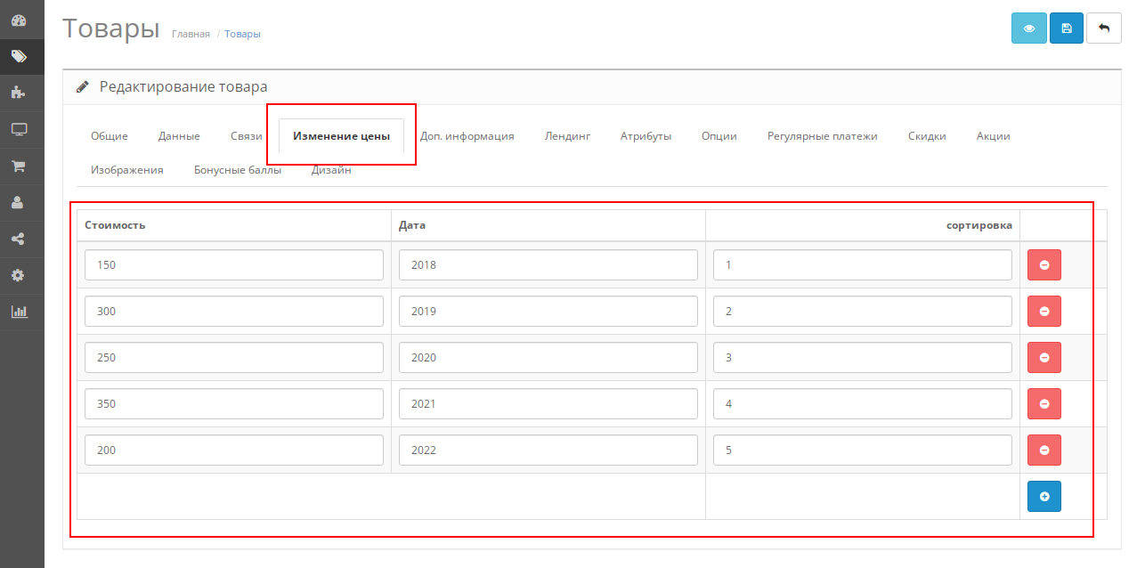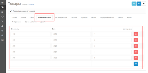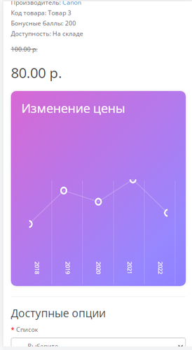 1. При наведении на период (год/месяц - отображается стоимость товара в данный период)