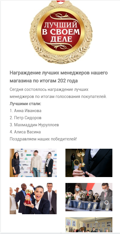 - Использоваться как Новостной анонс для будущих или прошедших событий.