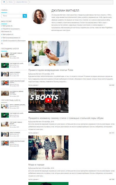 * Отдельная страница автора блога.