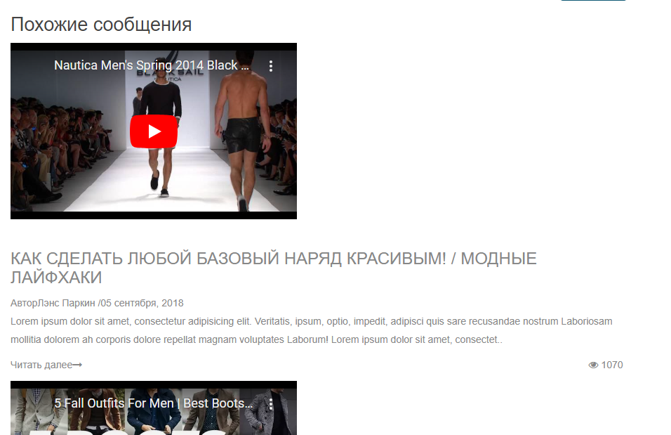 * Отдельная полная страница блога.