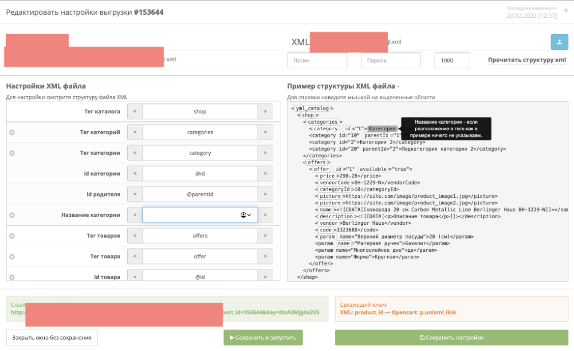 Можно указать ключ защиты для уникализации ссылки генерации а также указать свое название файла фида.