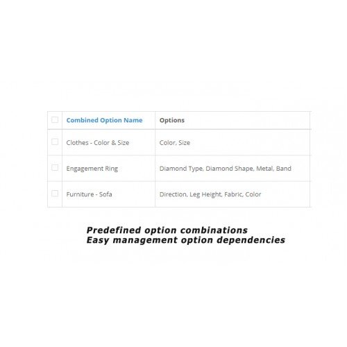 Создание переменных опций (комбинированные опций) по предварительно заданными комбинациями.