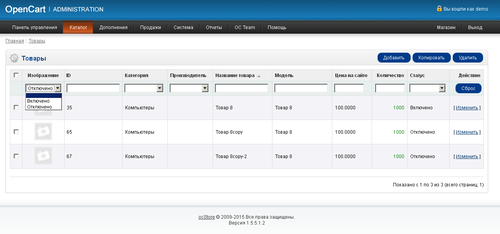 3. Перейти в Каталог > Товары (Список товаров), убедиться в работоспособности