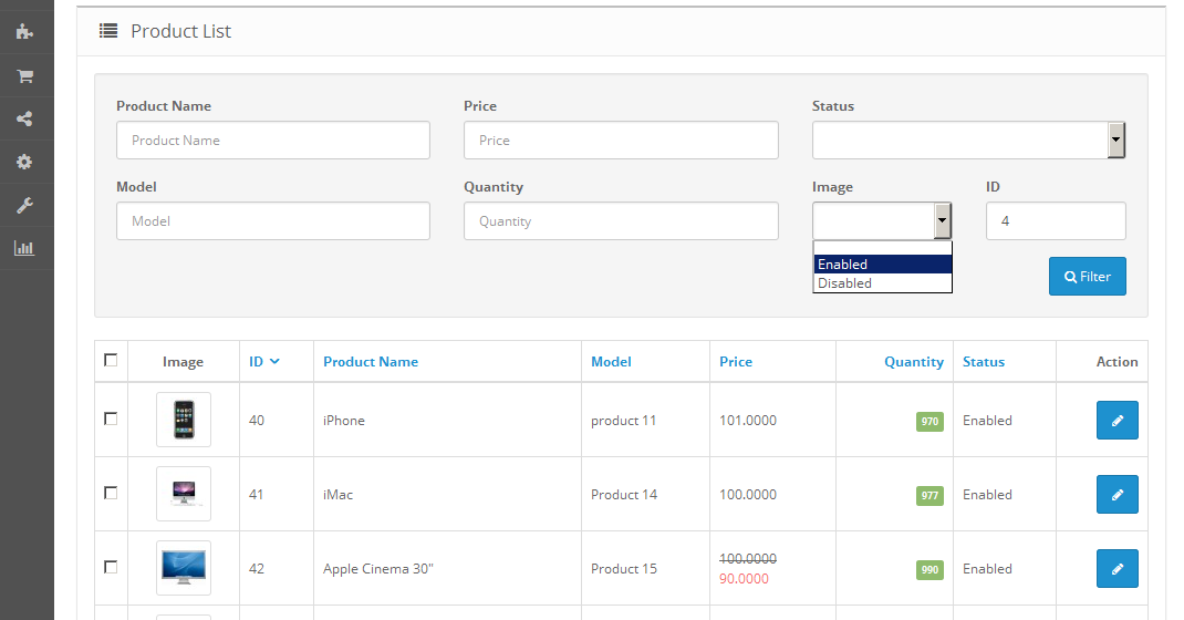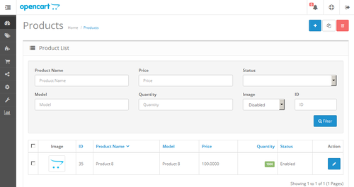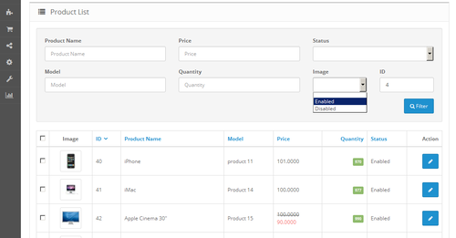* Opencart 230x уже содержит фильтр по изображениям, для него будет добавлен только фильтр по ID