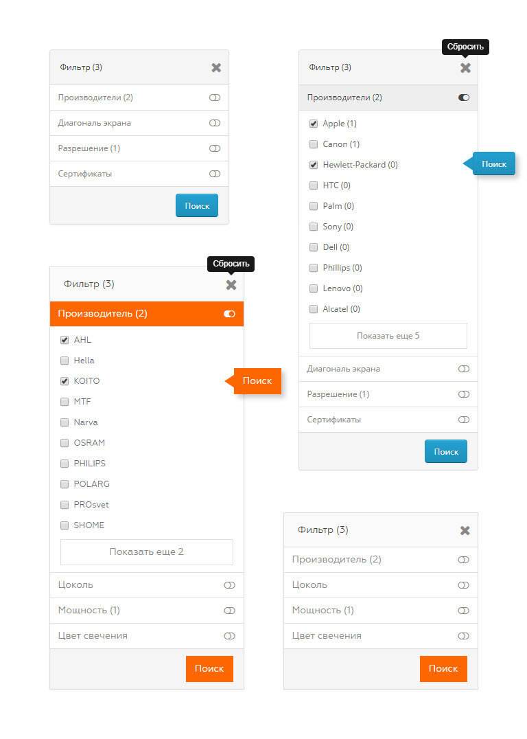 - кнопка "Сбросить" (позволяет одним кликом сбросить все примененные параметры фильтра);