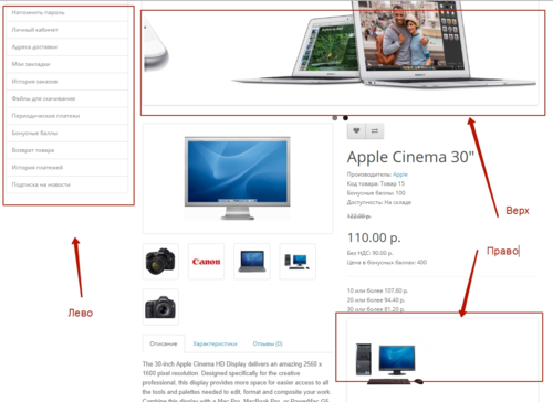( к сведению, включив "Своя схема" в карточке, Вы автоматически отключаете стандартные блоки (левая колонка, правая колонка, верх, низ и если Вам нужно что то отобразить из списка модулей указанных в общих схемах, Вам будет достаточно просто продублировать их в собственной схеме).