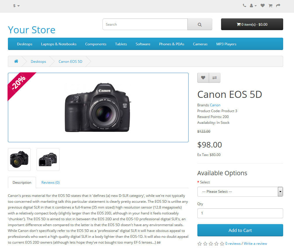 При назначении на товар акционной цены, вычисляет процент скидки и помещает стикер на изображении товара на странице категории и в карточке товара.