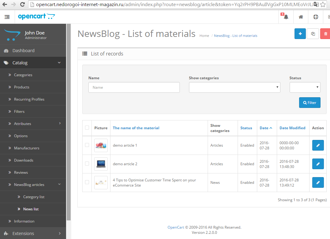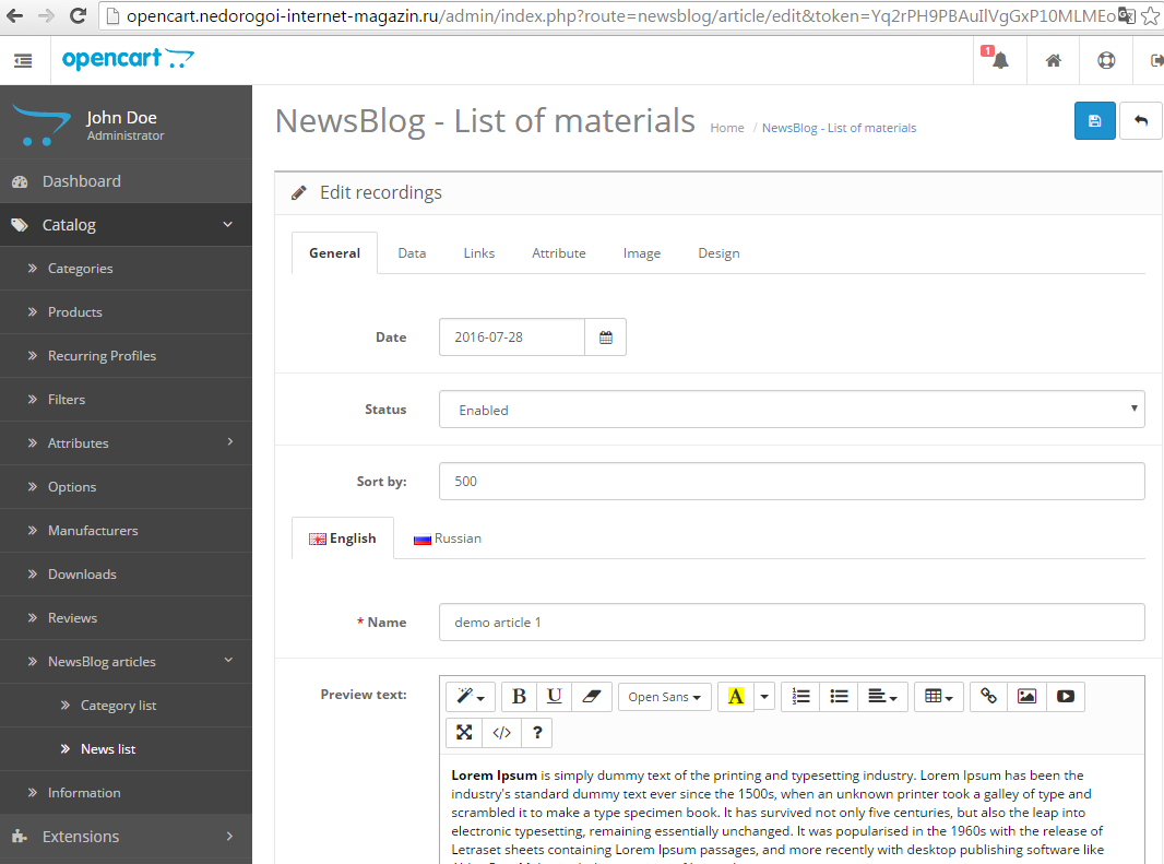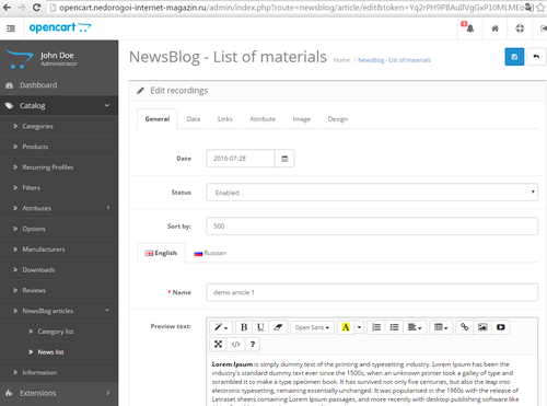 Новости / Статьи / Блоги - теперь создавать любые типы материалов стало доступно и бесплатно для пользователей OpenCart!