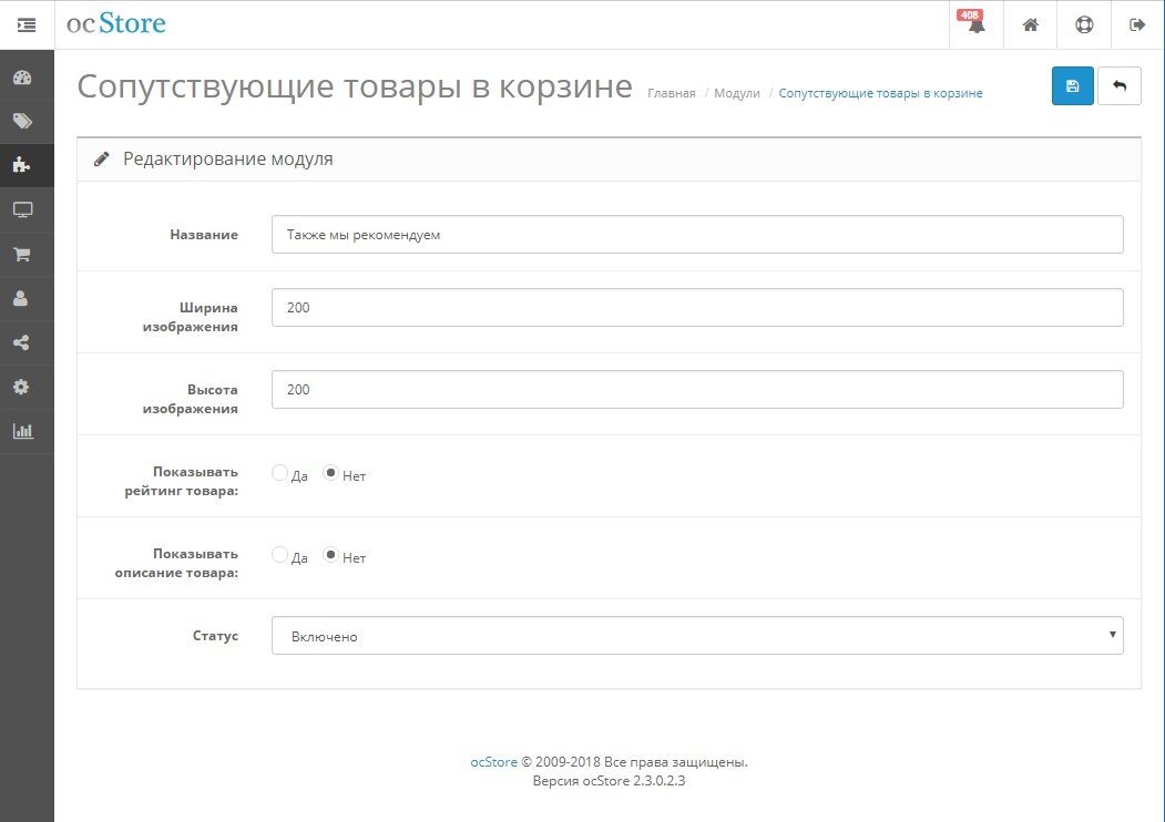 Модуль позволяет вывести в корзине или на странице заказа (также возможен вывод и на любой другой странице) сопутствующие товары тех товаров, которые находятся в корзине на данный момент. Таким образом покупатель видит товар, который будет полезен ему.