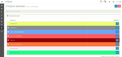 - Заходите в дополнения и устанавливаете появившийся там модуль - "Цветные статусы заказов". Включаете его.