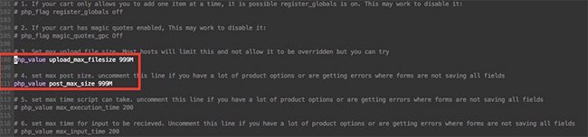 Есть два условия, которые диктуют максимальный объем загружаемого файла в OpenCart на основе php: 1. post_max_size 2. upload_max_filesize post_max_size Эта переменная определяет общий размер POST данных, который включает в себя файлы, как часть этих данных. Например: post_max_size 10M означает, что вы не можете загрузить больше, чем 10 Мб данных методом POST. upload_max_filesize Вторая переменная устанавливает максимальный допустимый размер загружаемых файлов. Учтите, что upload_max_filesize не может быть больше, чем post_max_size. Например: если post_max_size 10M и upload_max_filesize 2М, вы загрузите 5 файлов размером 2 Мб, но вы не сможете загрузить файл размером 3MB. Если upload_max_filesize больше post_max_size, вы можете загрузить только файл, который меньше или равен post_max_size. Эти две переменные, как правило, управляются из 3 общих мест: cPanel htaccess php.ini Важно! Новые изменения могут вступить в силу только после перезагрузки сервера или php-интерпретатора.